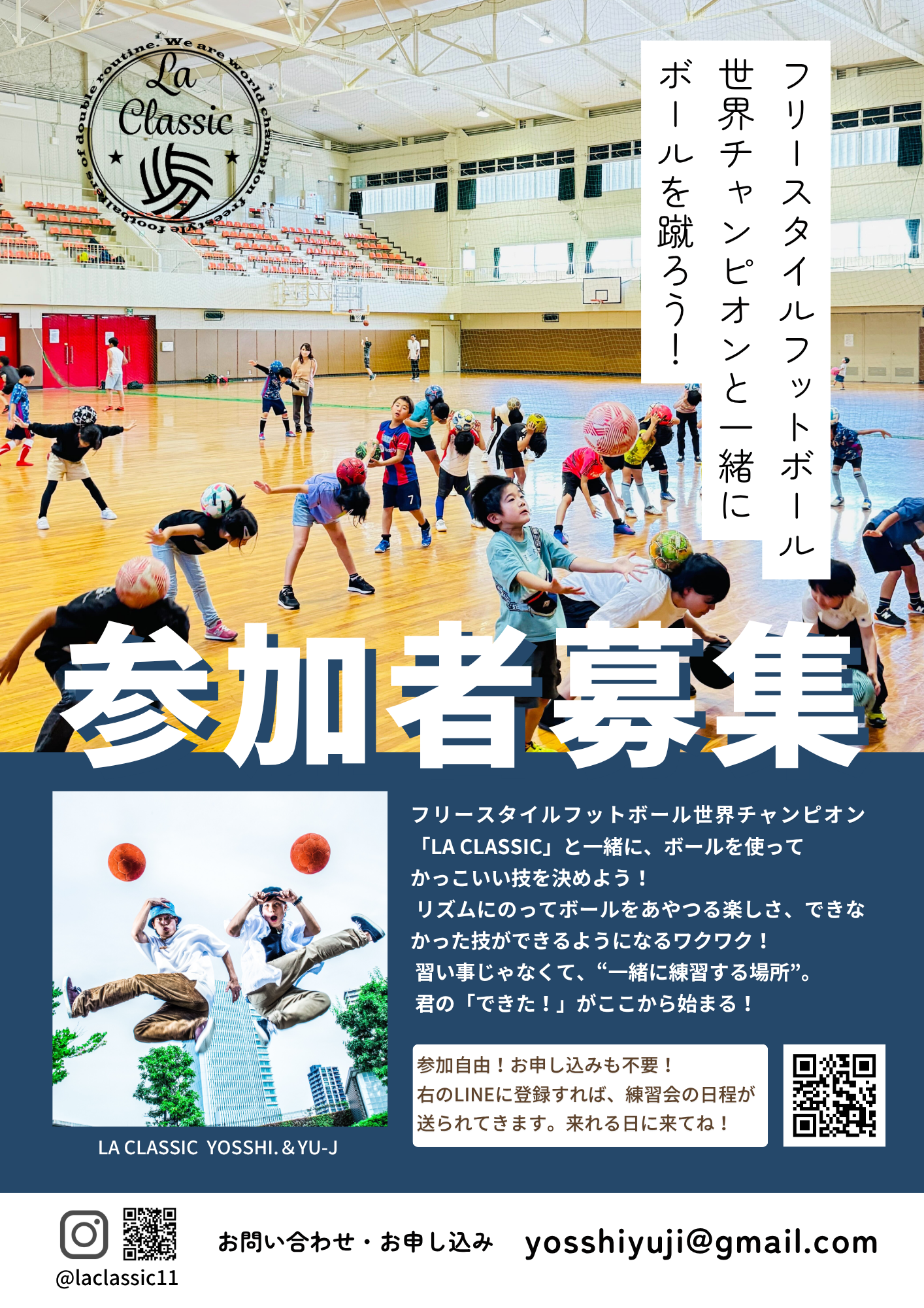 フリースタイルフットボール世界一のコンビ LA CLASSICのYOSSHI.とYU-Jと一緒に練習かできる